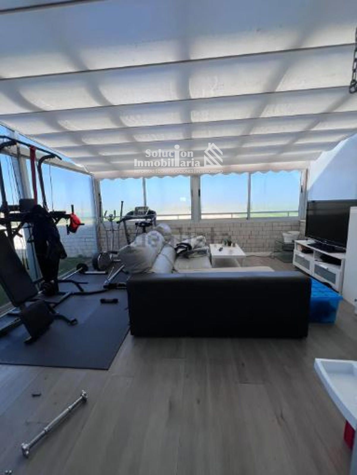 Terraza parcialmente cerrada, ideal como segundo salón, zona de ocio o gimnasio
